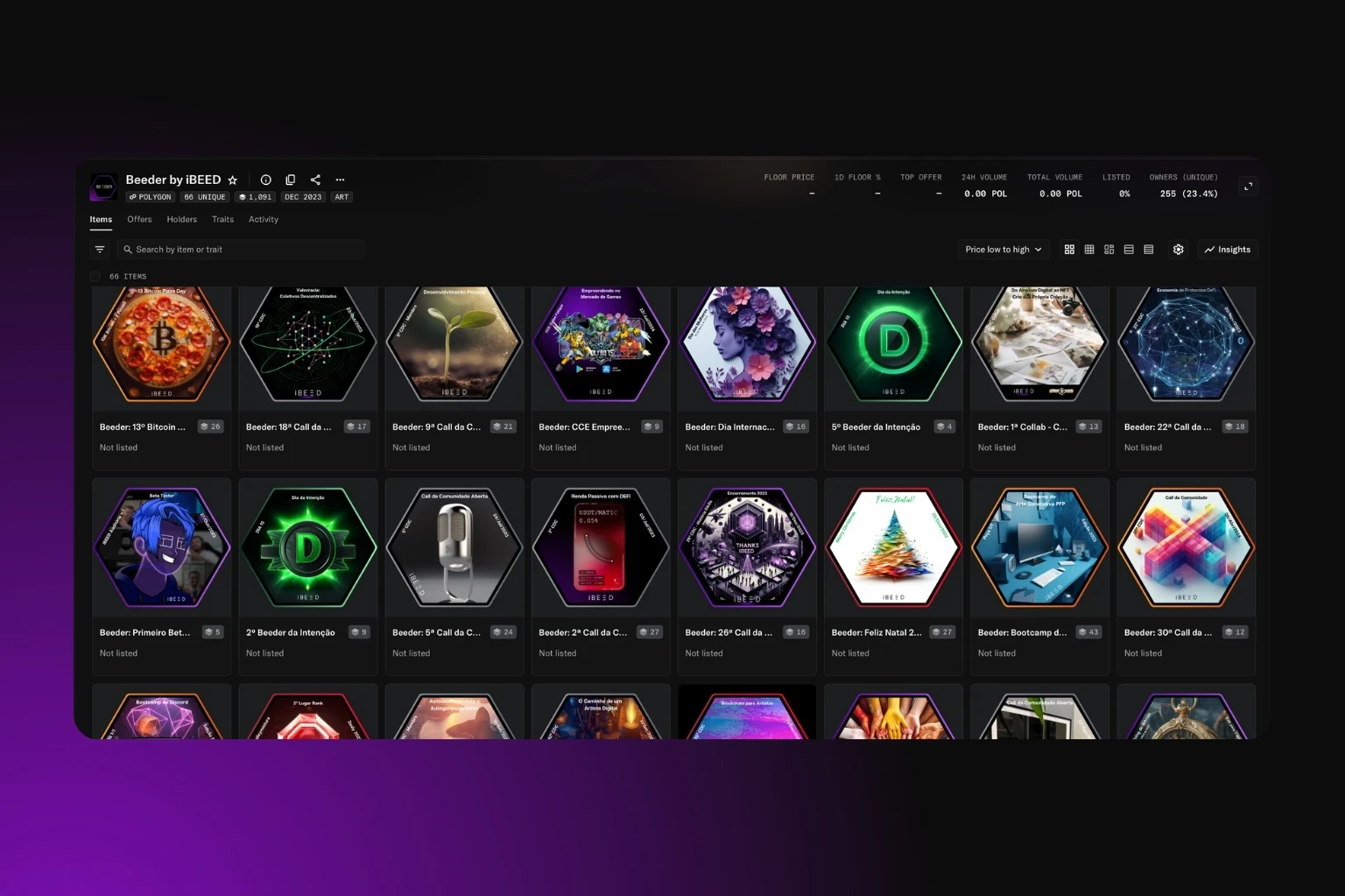 desenvolvemos os Beeders ↗, NFTs inspirados em POAPs, usados como prova de participação, registro de presença e reconhecimento dos membros mais engajados
