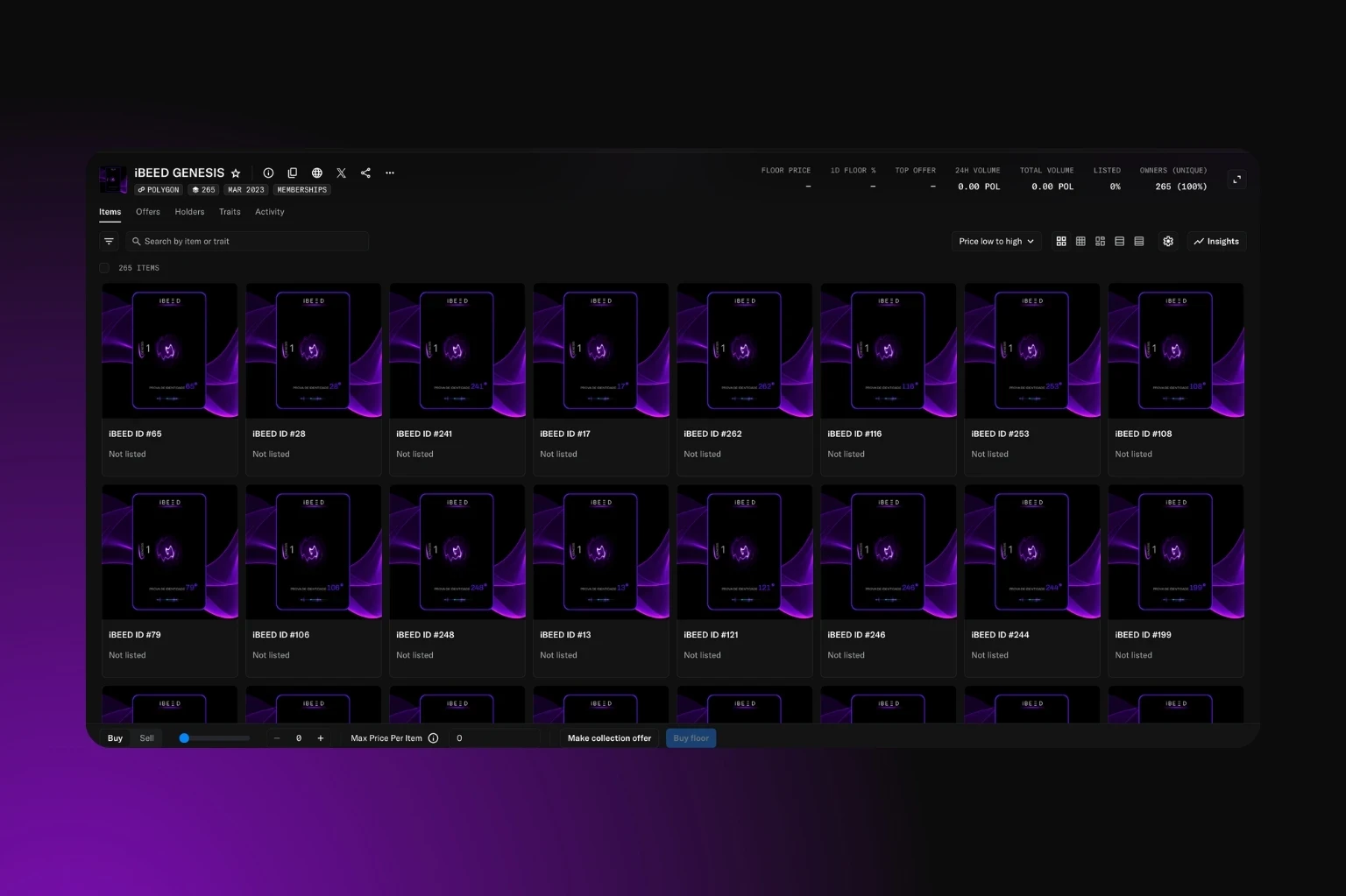lancei a primeira coleção de NFTs da iBEED, o iBEED GENESIS ↗, um cartão digital de membro que dava acesso a cargos e canais exclusivos no Discord.