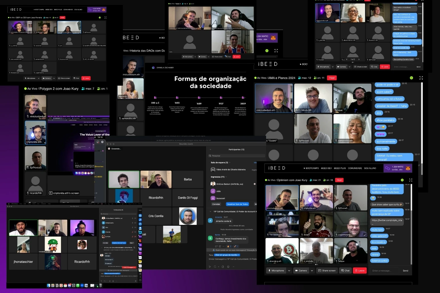 criei a call da comunidade, com encontros semanais às segundas-feiras, sempre com convidados para discutir blockchain, NFTs, DeFi, DAOs, tokens, cripto, arte digital etc.