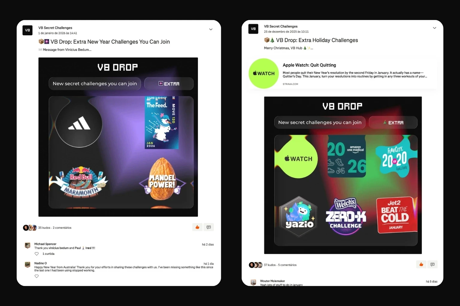 todos os finais de semana, após a curadoria acontecem DROPs com os desafios secretos da semana, como você pode ver no exemplo abaixo: