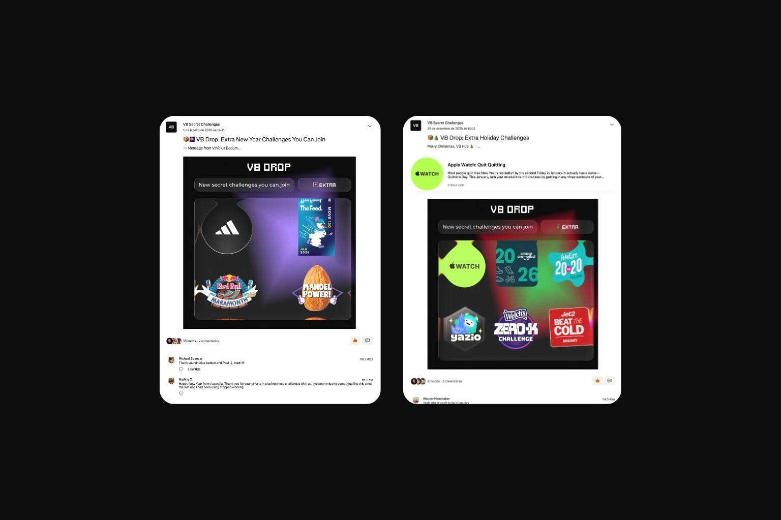 o VB Secret Challenger é uma curadoria de desafios "secretos" globais do Strava organizada como um arquivo vivo.